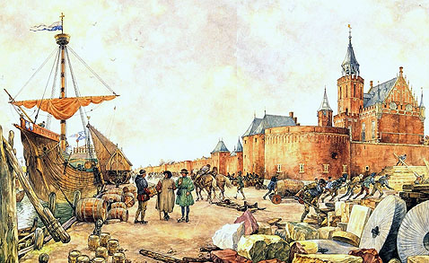 Vanaf de overzijde van de rivier, strekt het stadsfront van Kampen zich als een wit lint langs het water uit. Zo kent menig Nederlander Kampen. Maar stelt u zich eens voor dat u, na een urenlange reis door een spaarzaam bevolkt weidelandschap, de muren en poorten van het middeleeuwse Kampen nadert. Boven de muren zijn de talrijke torens van de kerken en stadskastelen zichtbaar. Hoe dichter u bij de stad komt, hoe meer verkeer er te zien is. In Kampen zelf is het een drukte van belang. Boeren uit de omgeving bieden hun zuivelproducten te koop aan op de Botermarkt. Vis, gevangen in de Zuiderzee of in de IJsseldelta rond Kampen, wordt verkocht op de Vismarkt bij de Vispoort. Graan wordt verhandeld op de Koornmarkt, het centrum van de stad. Aan de IJsselkade komen en gaan de schepen. Goederen worden gelost of overgeladen.